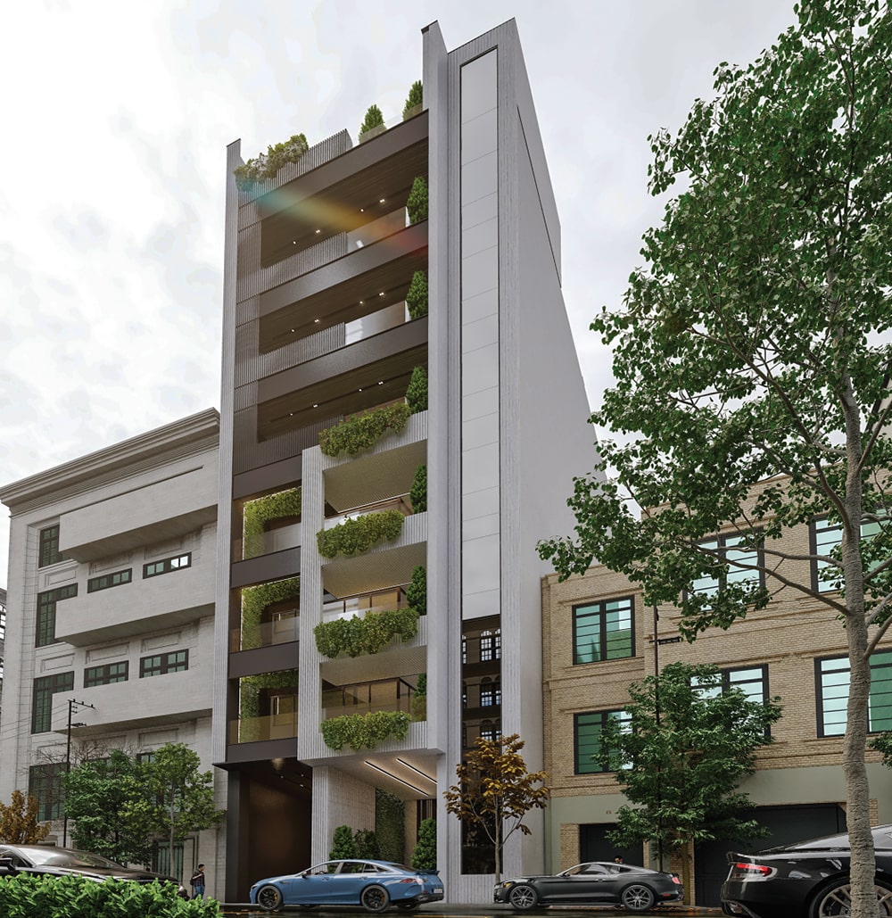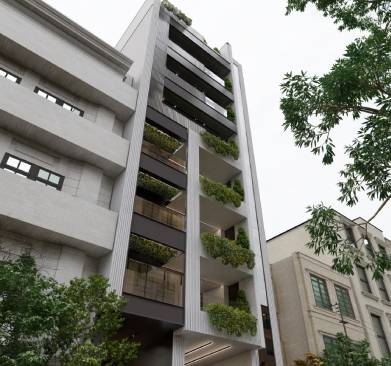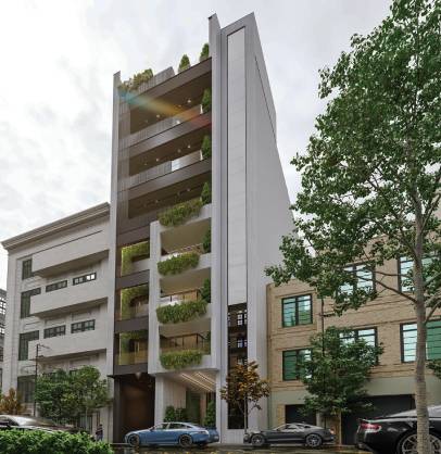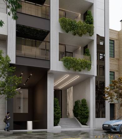 Atras residential building has been designed for land covering 500 square meters. It includes 6 single-unit floors, each of which is 300 square meters in size