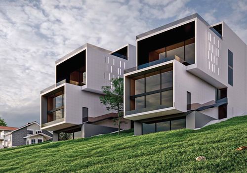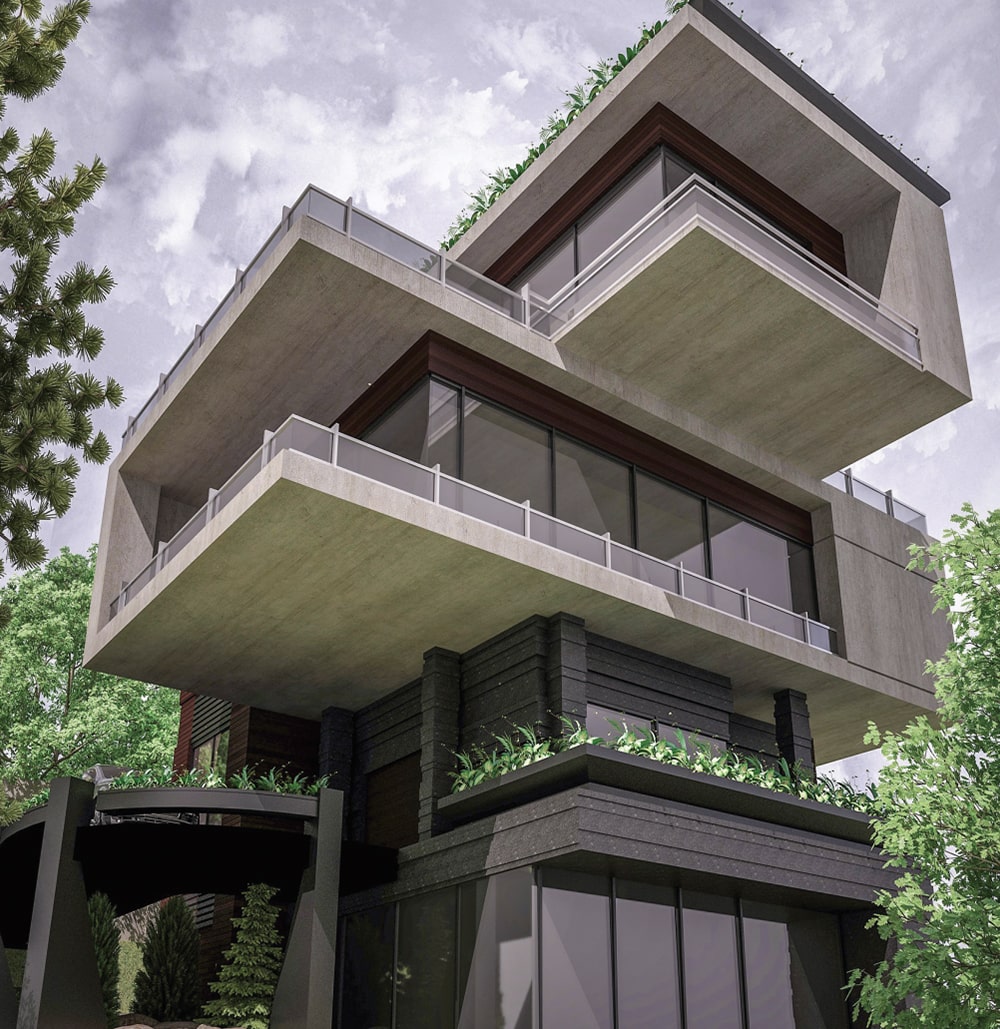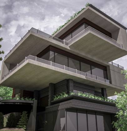 This villa has been designed for a land covering 985 square meters in Roodak county. It includes 3 floors above the ground floor and one floor